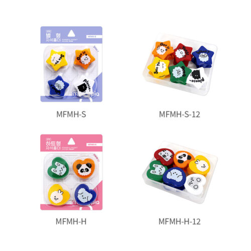 Features : Colorful heart-shaped magnets and animal illustrations It is easily usable on a steel surface. With its ferrite magnet, it can be used continuously.